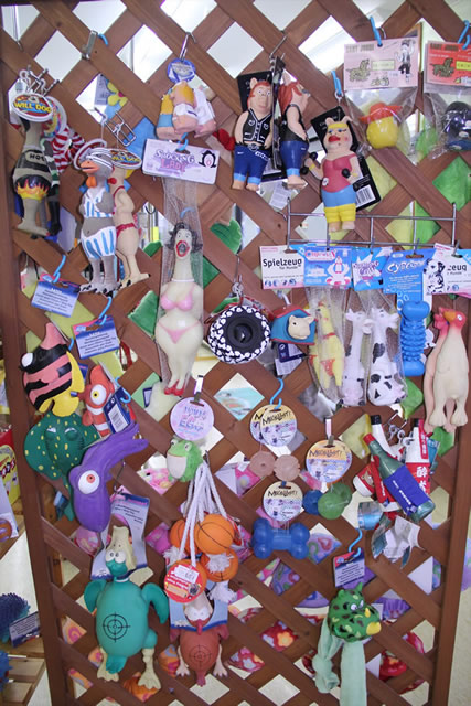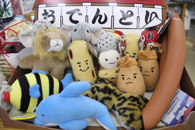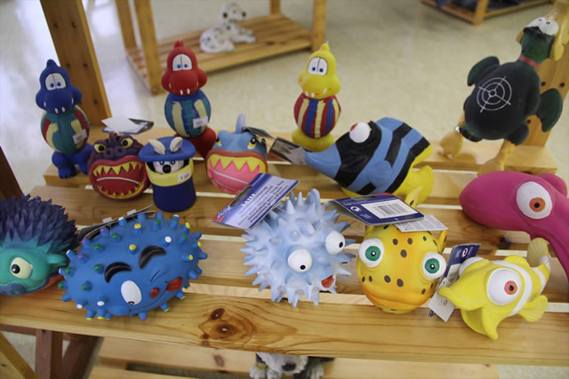 ワンちゃんが楽しく遊べるようなおもちゃです。咬んだり衝撃を与えると音が鳴るものが多いです。飼い主さんとワンちゃんのコミュニケーションに役立ちます。